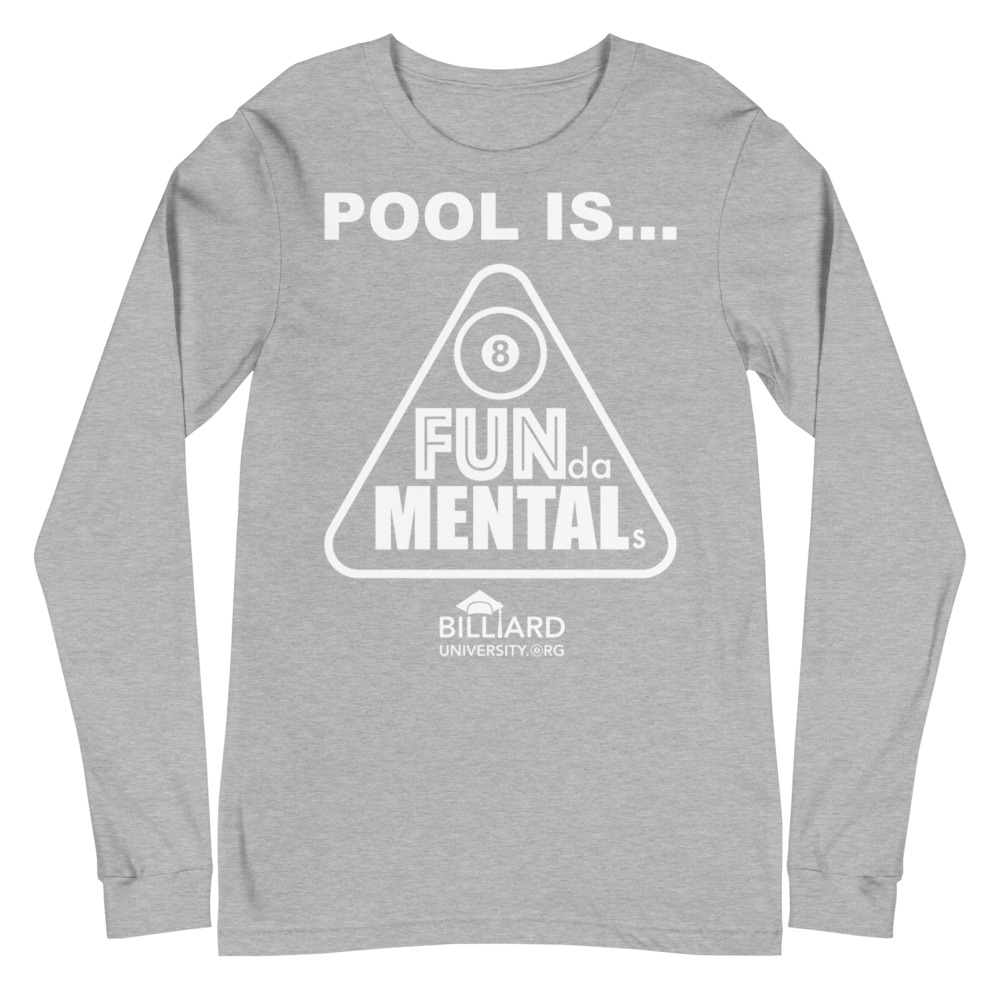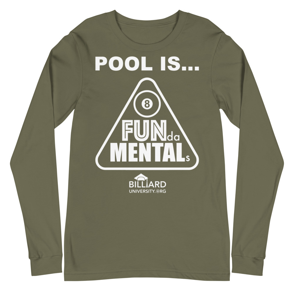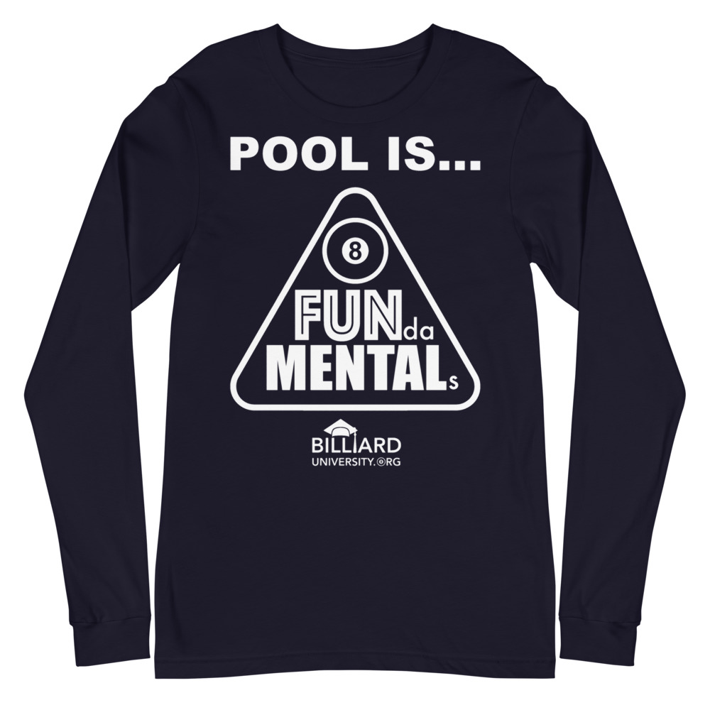 Pool and billiard long-sleeve T-shirts featuring FUNdaMENTALS, where having FUN and the MENTAL game are key ingredients.